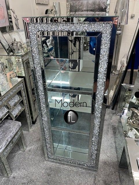180 cm Tall crushed crystal bookcase, Glitz sparkle display cabinet