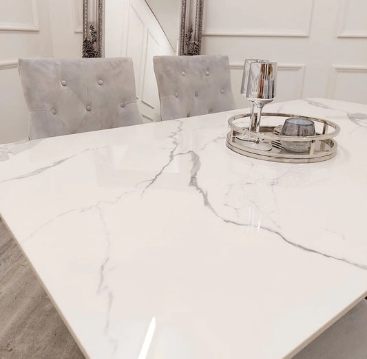 1.6m White Sintered Stone dining table with chrome legs and frame