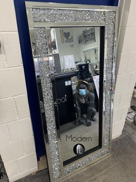 Extra Large 160x80 crushed diamond wall mirror, large leaning sparkle mirror