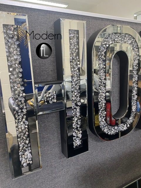 HOME Letter Mirror and Crushed Crystal Wall Ornament, decorative HOME piece