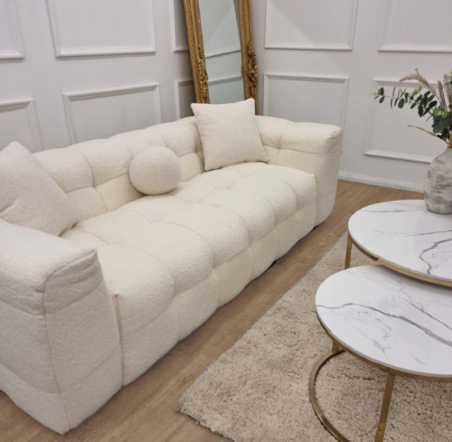 3 Seater Ivory Sofa, Bubble Boucle 3 Seater Sofa