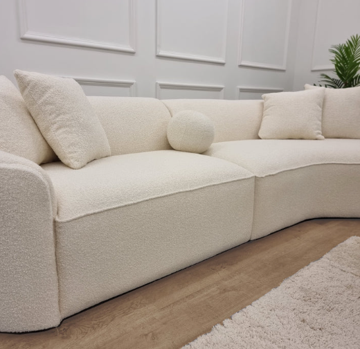 3 Seater Curved Sofa, Curved Cinema Boucle 3 Seater Sofa