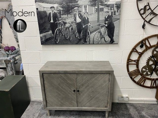2x Weathered soft grey wood 2 door sideboard, grey wood 2 door rustic cabinet