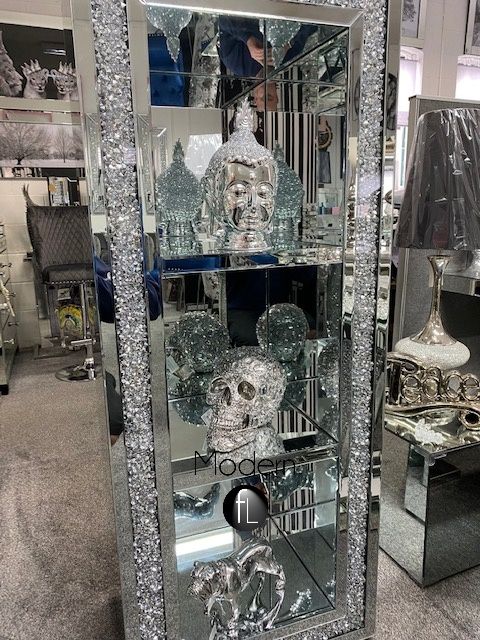 Tall crushed crystal bookcase, Glitz sparkle display cabinet 150cm high