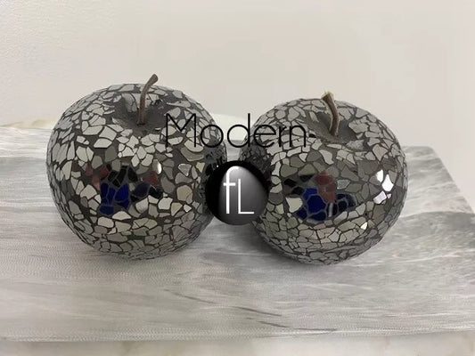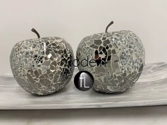 2x Black mosaic glass apple, black mirror decorative fruit display