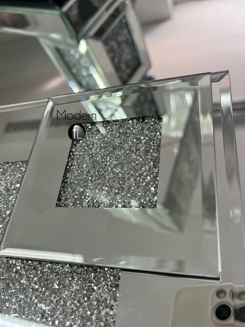Set of 4 crushed diamond coasters, squared mirror crystal drinks mat