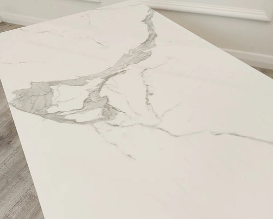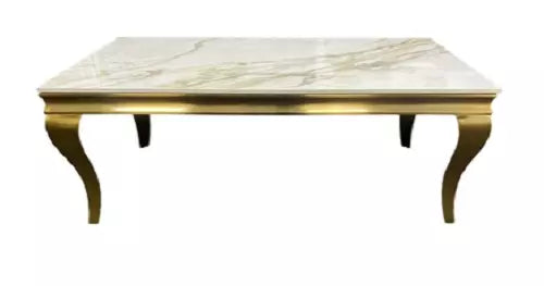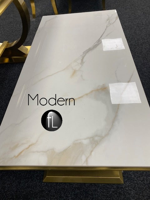 White Ceramic coffee table with gold vein, Gold metal frame & legs