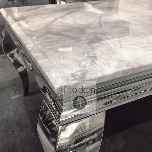 New Wave Coffee Table With Grey Marble Top And Chrome Curved Base