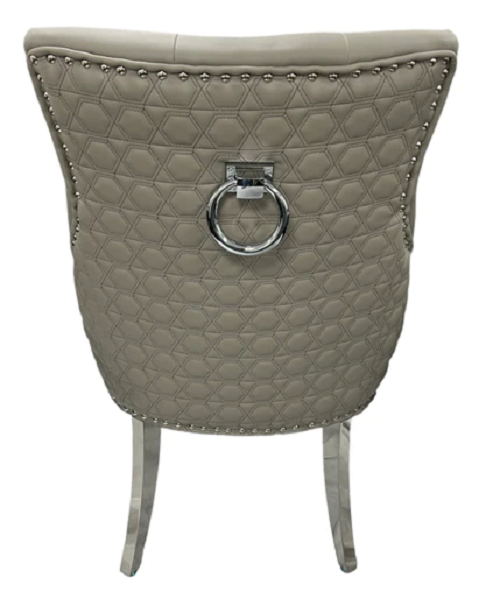 Grey Velvet Dining Chair with Chrome Ring Door Knocker