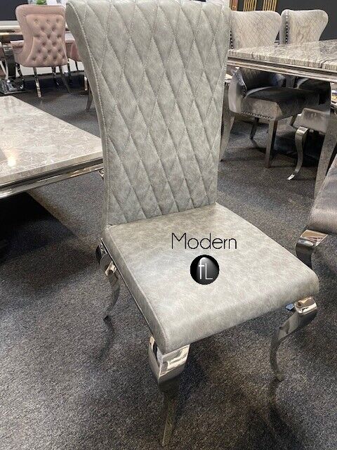 x2 Light grey Louis dining chair with chrome curved leg & cross stitch