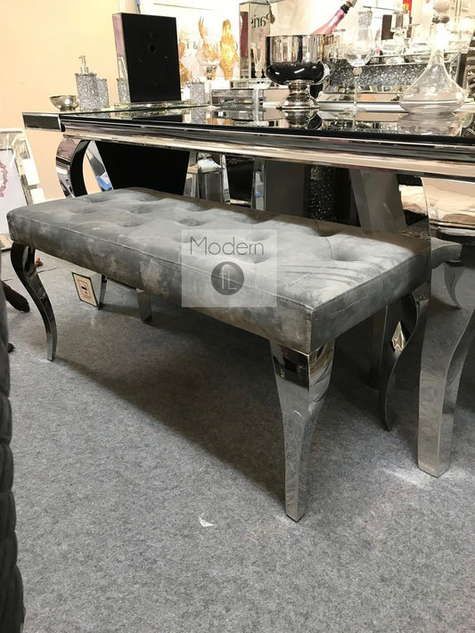 Luxury grey velvet 160cm Louis dining bench