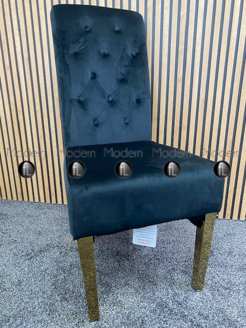 Black velvet x4 dining chairs with gold legs & lion knocker