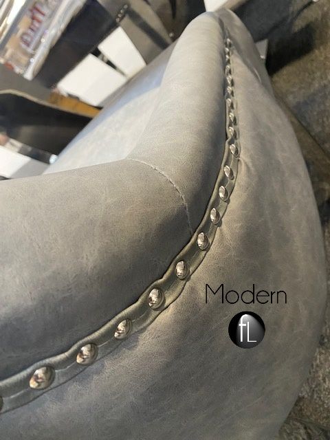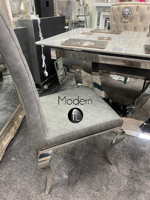 2x Dark grey leather effect dining chair with Lion knocker & chrome leg, PU Leather