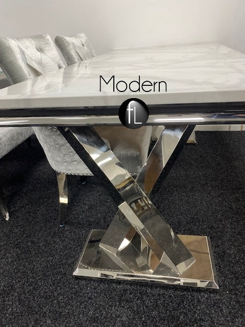 Dining table 1.8m wide with cross chrome leg, Winsor marble dining table