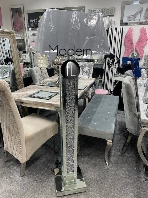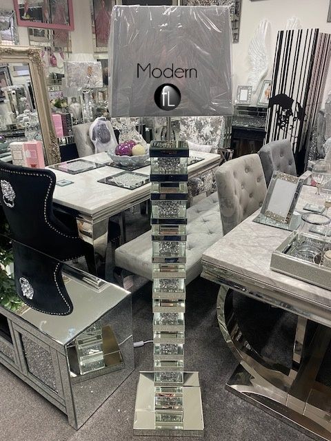 Mirrored and crushed diamond floor lamp with shade option