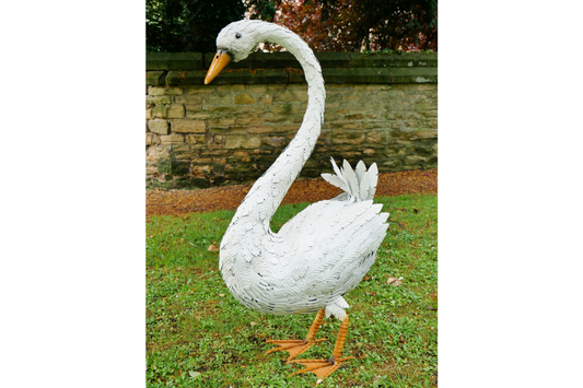 METAL SWAN GARDEN STATUE, LARGE SWAN GARDEN SCULPTURE 100cm high