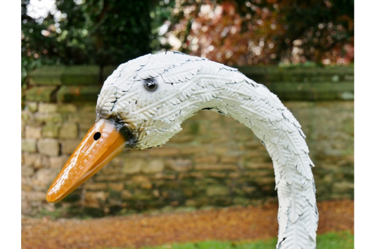 METAL SWAN GARDEN STATUE, LARGE SWAN GARDEN SCULPTURE