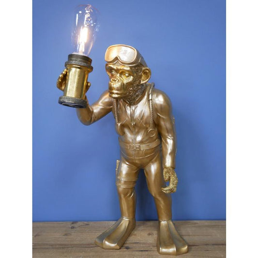 Scuba Steve Gold Monkey Holding a Light Bulb 57cm high