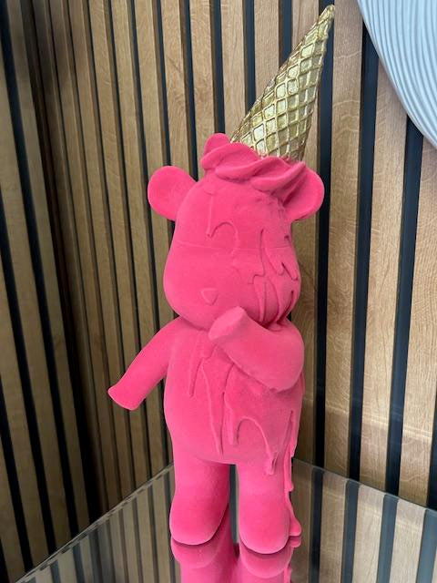 Pink Teddy Bear Ornament with Dripping Ice Cream