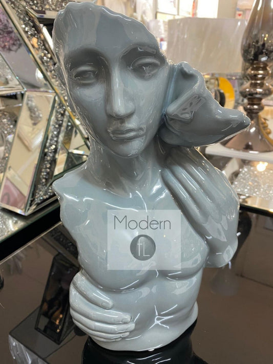 Contemporary grey ceramic loving couple, grey lovers ornament