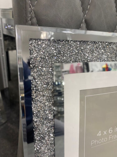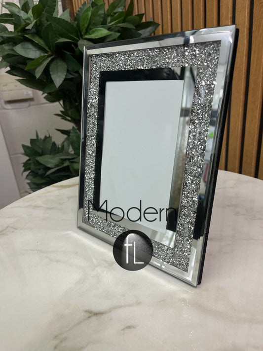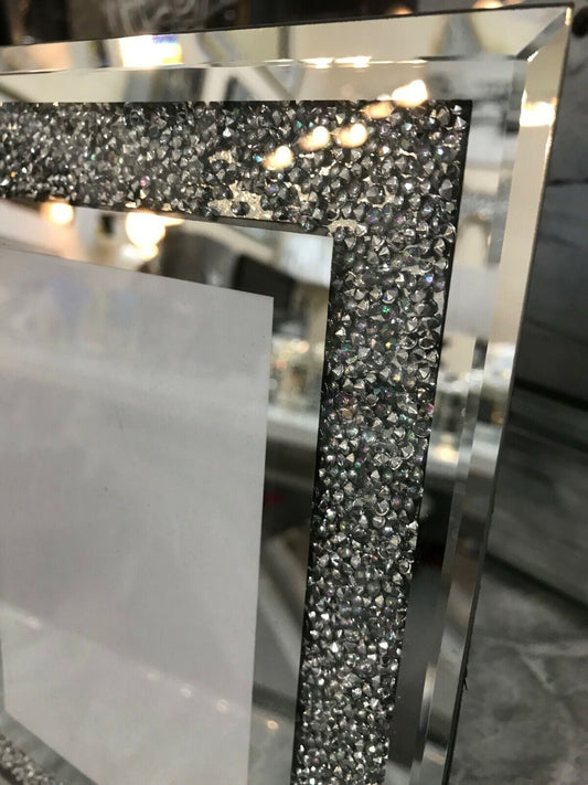 Crushed diamond 6x4 photo frame, mirror glass trim with Large crushed sparkle