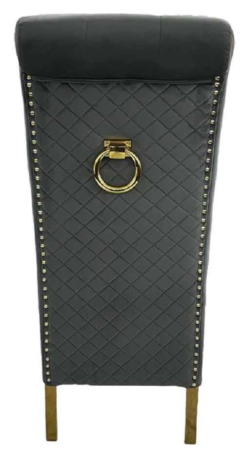 Pair Of Grey Scroll Back Dining Chair Gold Leg