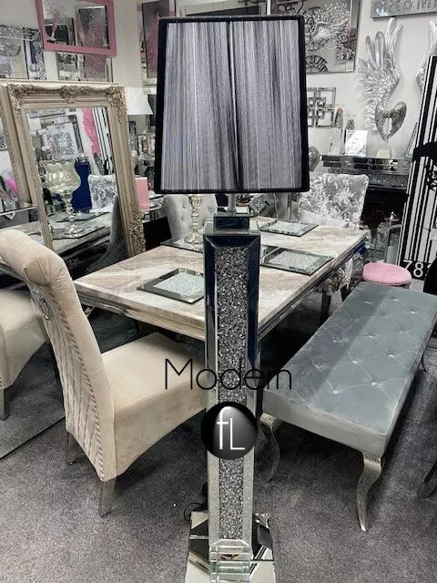 Mirrored crushed crystal floor lamp with shade option, glitz floor lamp
