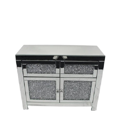 Crushed diamond contemporary 2 drawer sideboard 100cm wide, Mirror glitz sparkle