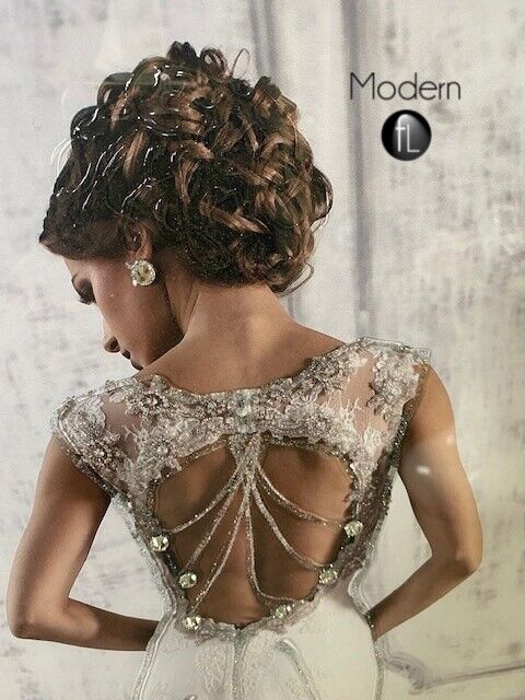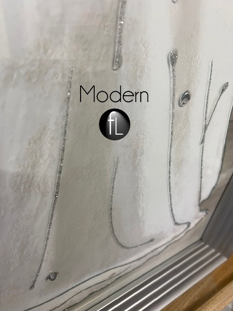 Lady in white Gown mirror picture 3D glitter detail in silver wood frame, glitter art