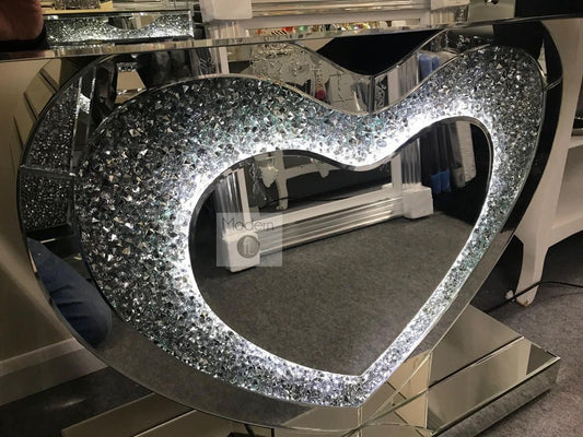 Heart shaped mirrored crushed diamond sparkle table lamp, glitz table lamp