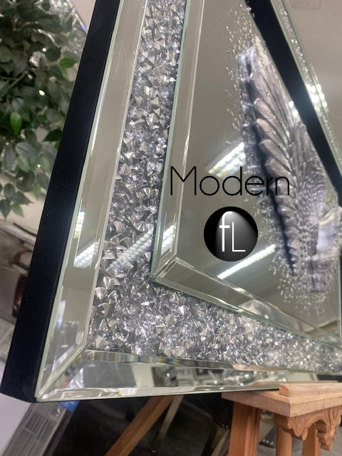 3D Angel wings mirrored picture with glitter art detail in crushed crystal frame