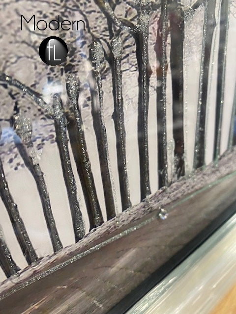 Snowy tree scene 3D picture glitter in mirrored frame, Glitter art