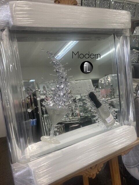 Champagne and cocktail glass 3D glitter art mirrored picture, modern picture
