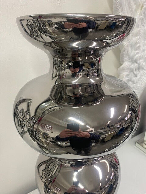 Silver Flower vase Ceramic Chrome Art Deco dried flower vase Silver Ornate Vase