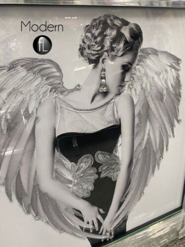 Lady and angel wings mirror picture with glitter detail, 3D glitter art angel