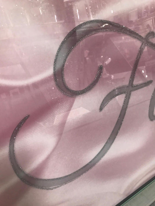 Lady in Pink Dress Small Picture on Mirror Frame with Glitter Detail
