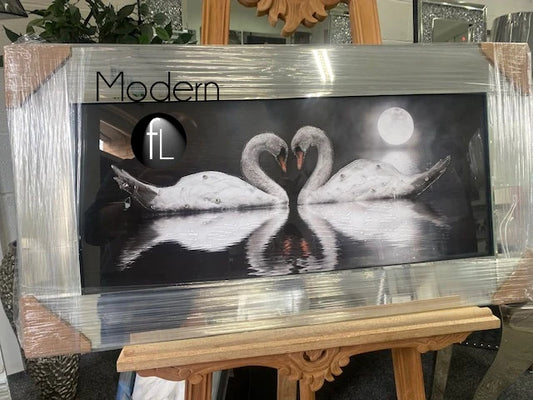Lady In White Gown Picture on Mirror Frame with Glitter Detail 85x45 cm