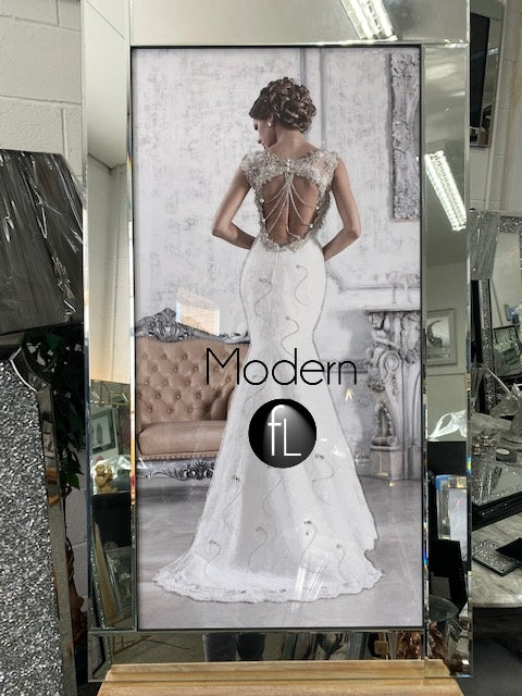 Lady in white Gown, Large mirror picture 3D glitter detail in mirror frame
