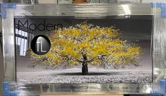 Stunning yellow blossom tree 3D glitter art picture mirror frame