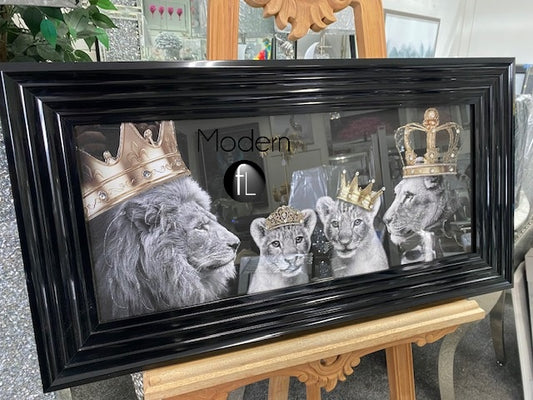 Lion pride of the family wall picture in black stepped frame, 70x30cm