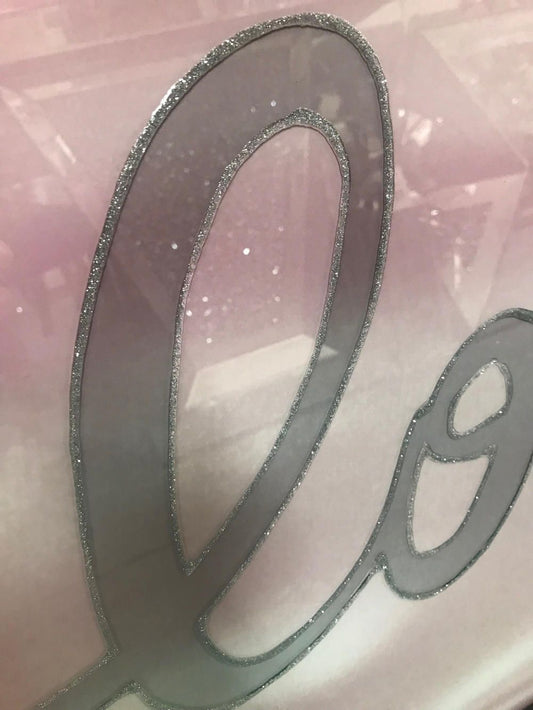 Pink rose champagne and flutes 3D glitter art mirrored picture in mirrored frame