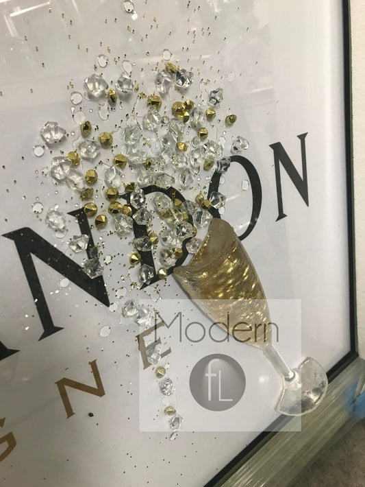 White Moet & Chandon Champagne Picture with 3D Flutes and Sparkle Detail