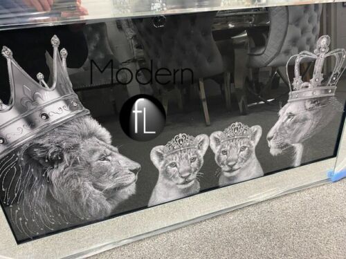 Lion Pride Family Wall Art in mirror frame, Large Lion Family Art 3 cubs 115x66