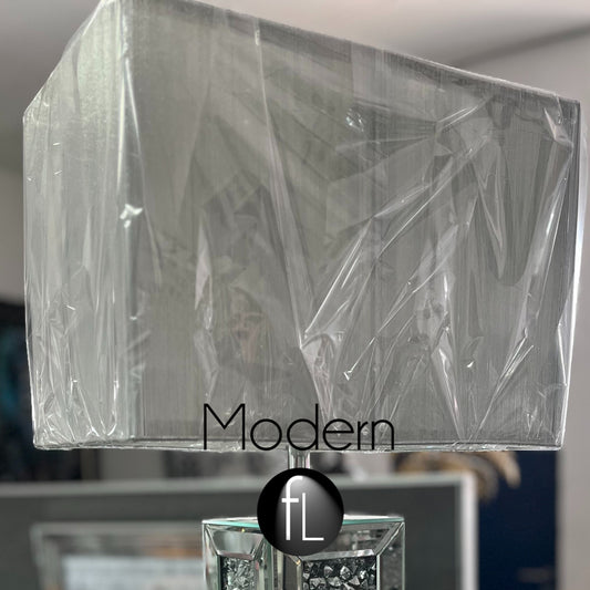 Mirrored and crushed diamond table lamp with shade option, glitz table lamp