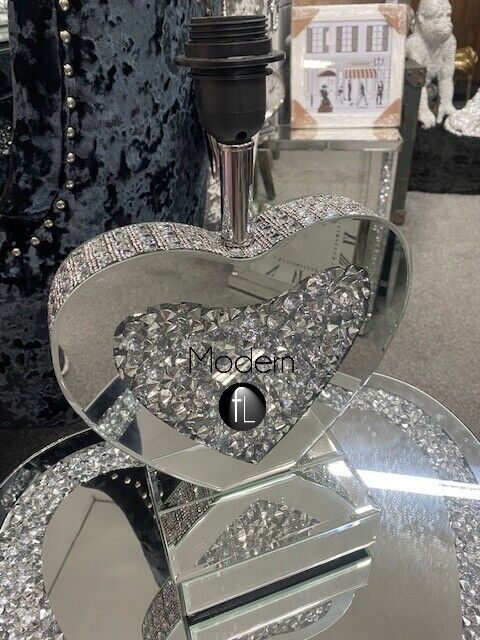 Heart shaped mirrored crushed diamond sparkle table lamp, glitz table lamp