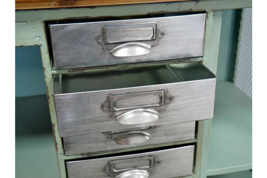 Industrial style wood and metal TV stand, 110 cm wide TV unit