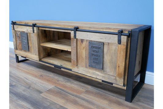 Industrial Iron Works Wooden TV Unit 160cm Wide