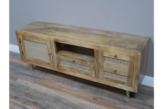 INDUSTRIAL STYLE RUSTIC WOODEN TV CABINET WITH RATTAN 160 CM WIDE