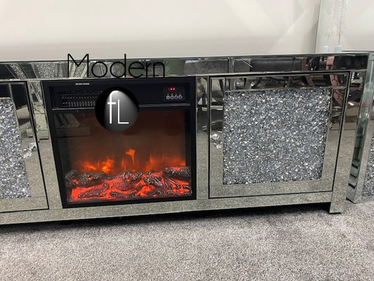 Large 150cm Mirrored Crushed Diamond TV Stand with electric heater