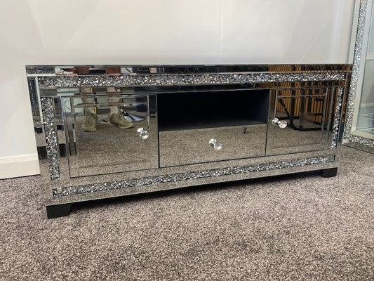 Luxury large mirrored crushed crystal tv stand 150cm wide